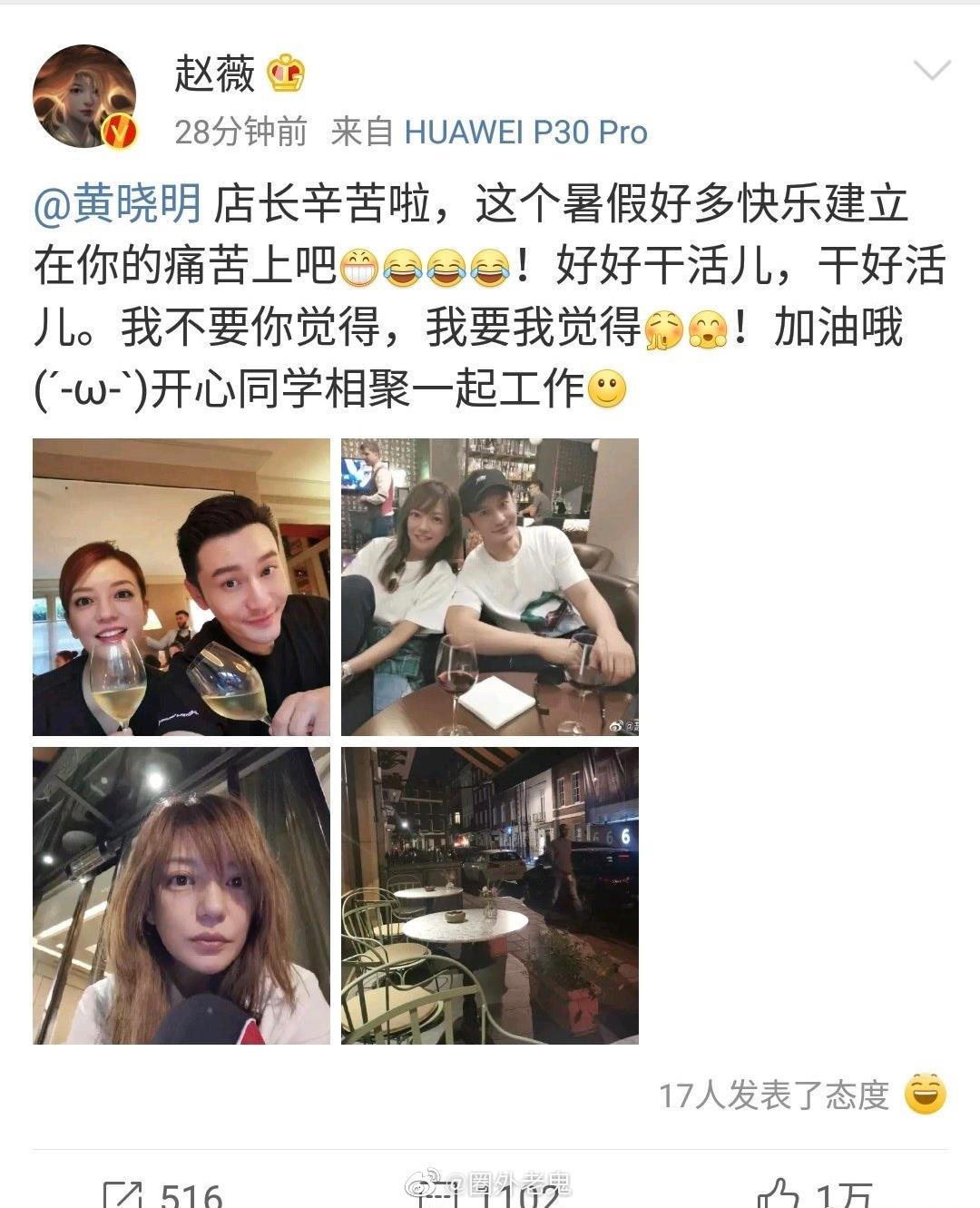 赵薇用明学喊话黄晓明,我不要你觉得,我要我觉得,要开心哦,是不是还差一句,要不你别干了
