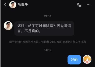 所以很快她就私信网友删帖了。