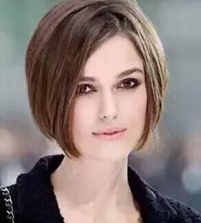 圆脸的妹子很适合波波头,非常好打理,懒人的福音。内扣的发尾能更好的修饰圆脸妹子脸颊的肉肉,视觉上打造小脸,空气刘海的轻薄感能让整个人更加活泼可爱。