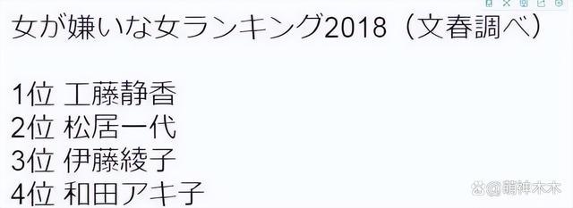 但与木村拓哉结合之后,她竟蝉联多届民选 " 最讨厌女艺人榜 " 的榜首,就在 19 年的排名揭晓后,工藤静香仍是第一名。调查结果显示,她被讨厌的原因就一个——木村拓哉是她的丈夫。