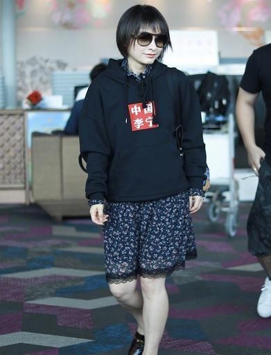 吴昕算不得瘦,所以她选择的单品都不是完全的紧身款。上衣是宽松款,而裤子又是微喇设计的阔腿裤,加上是深色的选择,所以整体造型很显瘦。