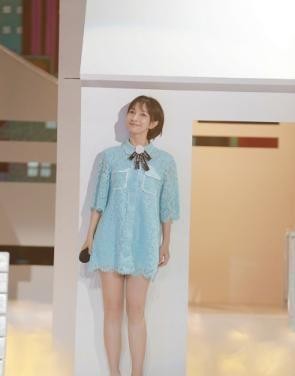 这种蕾丝元素的连衣裙,一直以来凹的都是甜美青春风,加上天蓝色这种清新感爆棚的颜色,以及领口位置领结的设计,都让裙子更加的有少女味道。裙摆的高度又恰到好处,很显腿长。