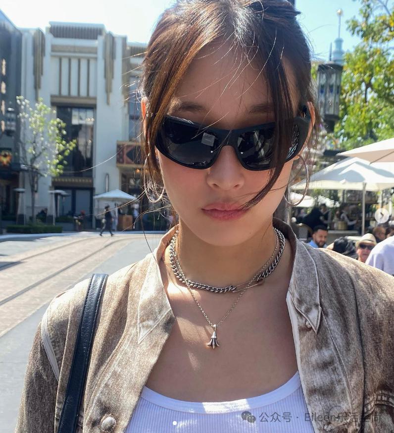 文徐允还喜欢用配饰来增加造型的时髦感,项链叠戴、造型夸张的墨镜或鞋子,都很常见。