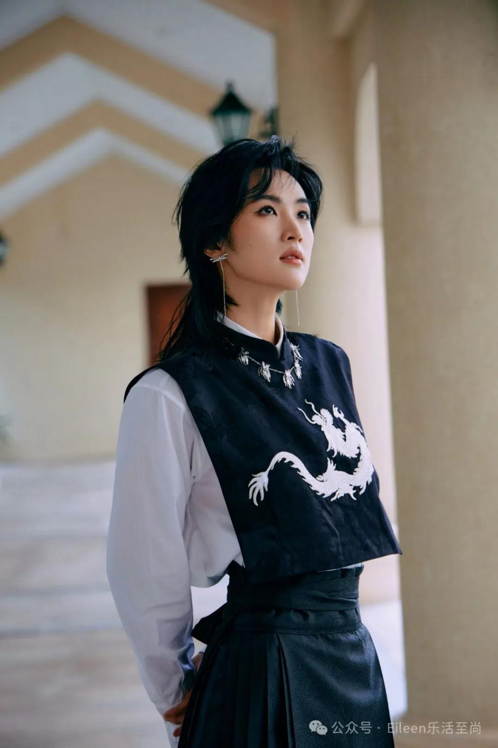 姚安娜身高175cm,五官气质偏硬朗,转变风格后,给人的感觉倒更自然亲和,也更有记忆点,她还尝试了狼尾短发,试图将少年感推到极致。