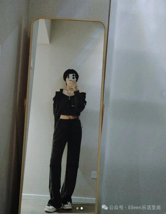 精致名媛不复存在,各种运动服和工装,成了她的固定"工作服"。