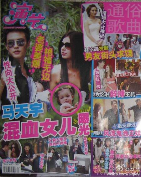 杂志曝马天宇结婚有混血女儿 娇妻美艳靓丽