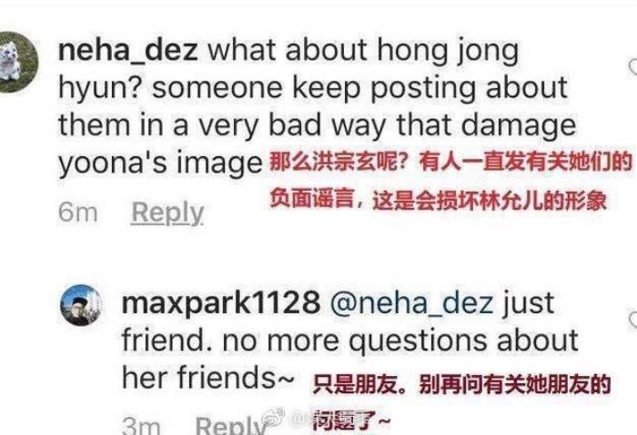 再看下别的回复,此前其实小编也看到不少传洪宗玄与允儿谣言的文章。这位粉丝也提出来了,而后经纪人就说了二人只是朋友而已,也是直接否认了各种传闻。