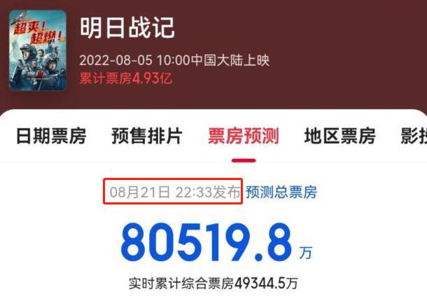 而两周之后,累积票房已接近 5 亿,预测总票房暴涨至 8 亿。