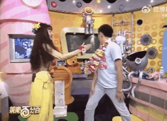 在和小 S 一起主持时,突然掀开小 S 的裙子;