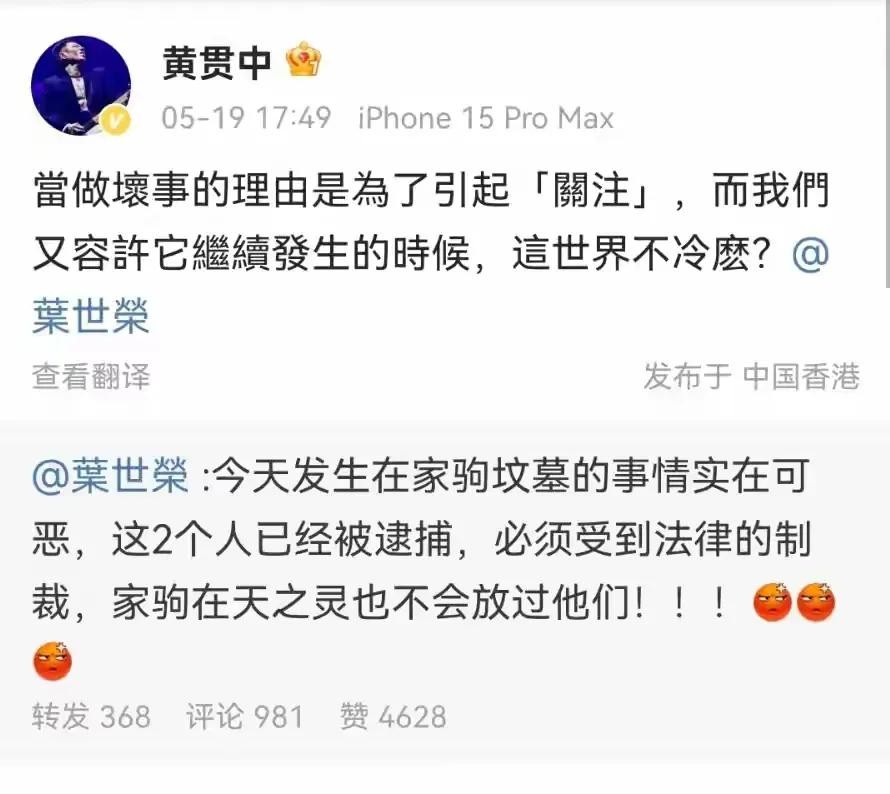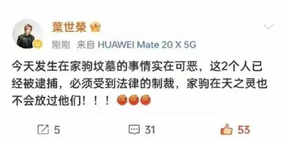 叶世荣也在社交平台上发文,透露两名破坏者已被逮捕,并强调他们必将受到法律的制裁。他坚信,家驹在天之灵不会放过他们。