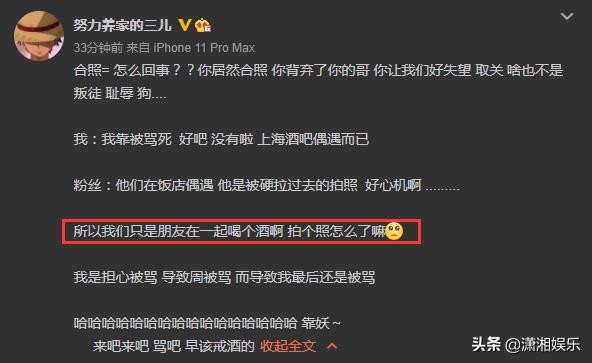 当罗志祥粉丝发现三儿跟周扬青私底下一起喝酒,酒后还拍亲密合照时,三儿的处境变得一言难尽。“怎么回事?你居然合照。你背弃了你的哥,你让我们好失望,取关。”