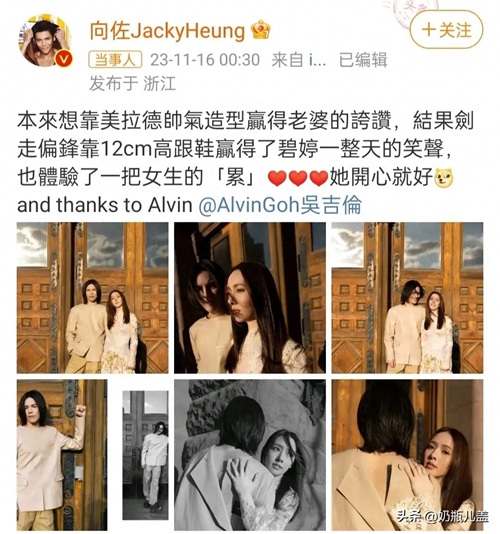 向佐郭碧婷拍大片了,向佐罕见穿12cm高跟鞋,为讨老婆一笑!