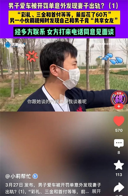 炸裂!处理罚单意外发现妻子是“共享女友”,60万彩礼打水漂