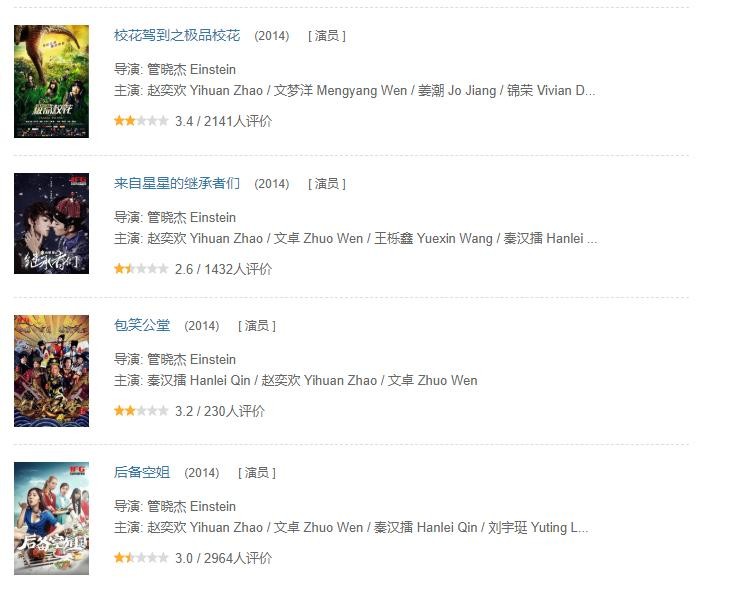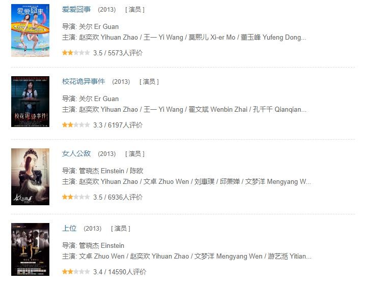 而赵奕欢就在所谓“青春”的围墙下,一直没走出来。看下她这些年主演的作品,《上位》《女人公敌》《爱爱囧事》《校花诡异事件》《后备空姐》《来自星星的继承者们》《校花驾到之极品校花》等等。每一部的豆瓣评分都低得可怜,无不在挑战观众的审美下限。