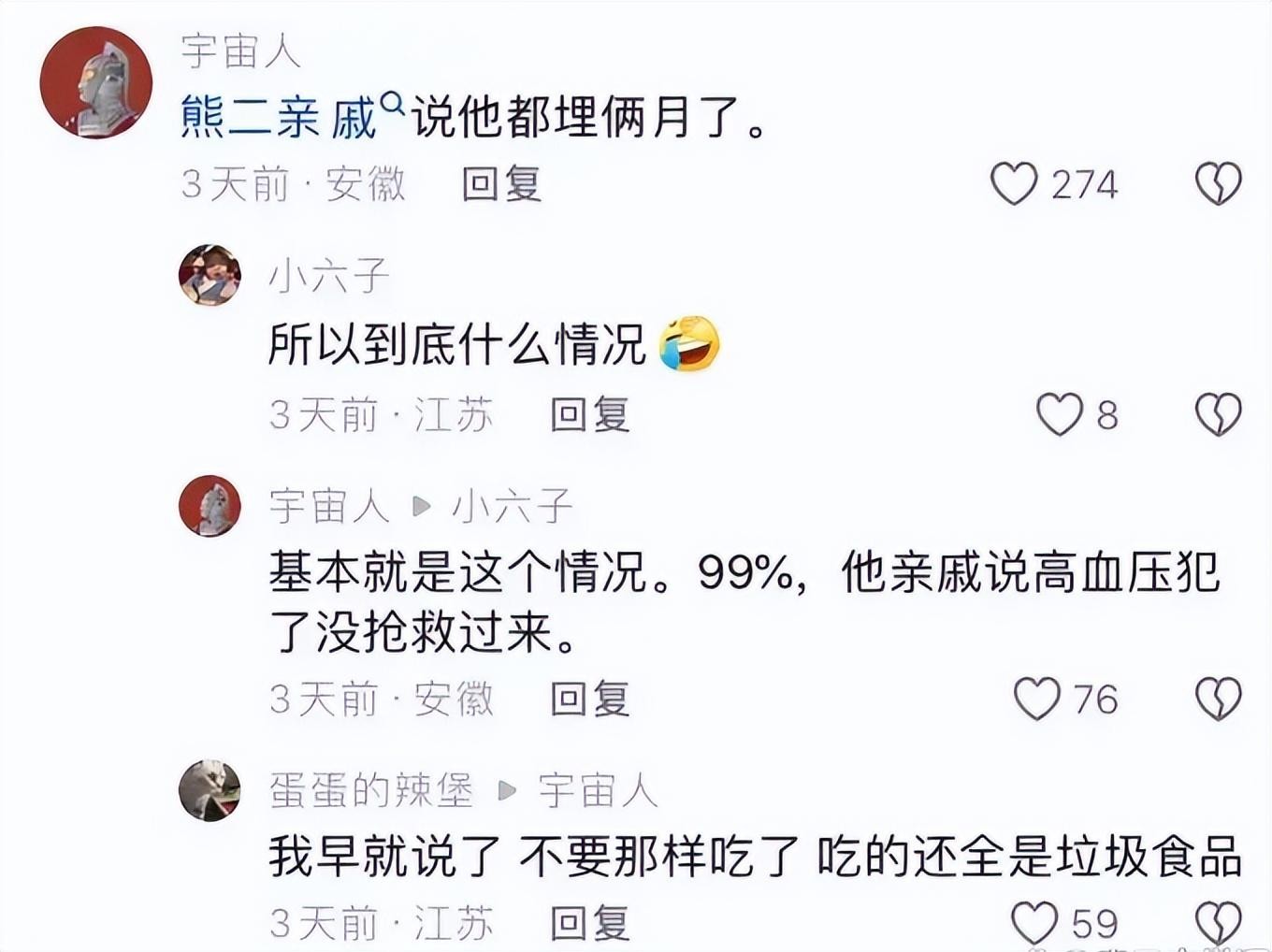 我忍不住翻看熊二以前的视频,那个开朗活泼的大男孩,那个总是能给人带来欢乐的吃货,怎么就这样悄无声息地离开了呢?