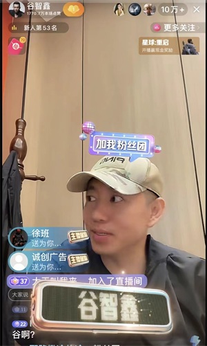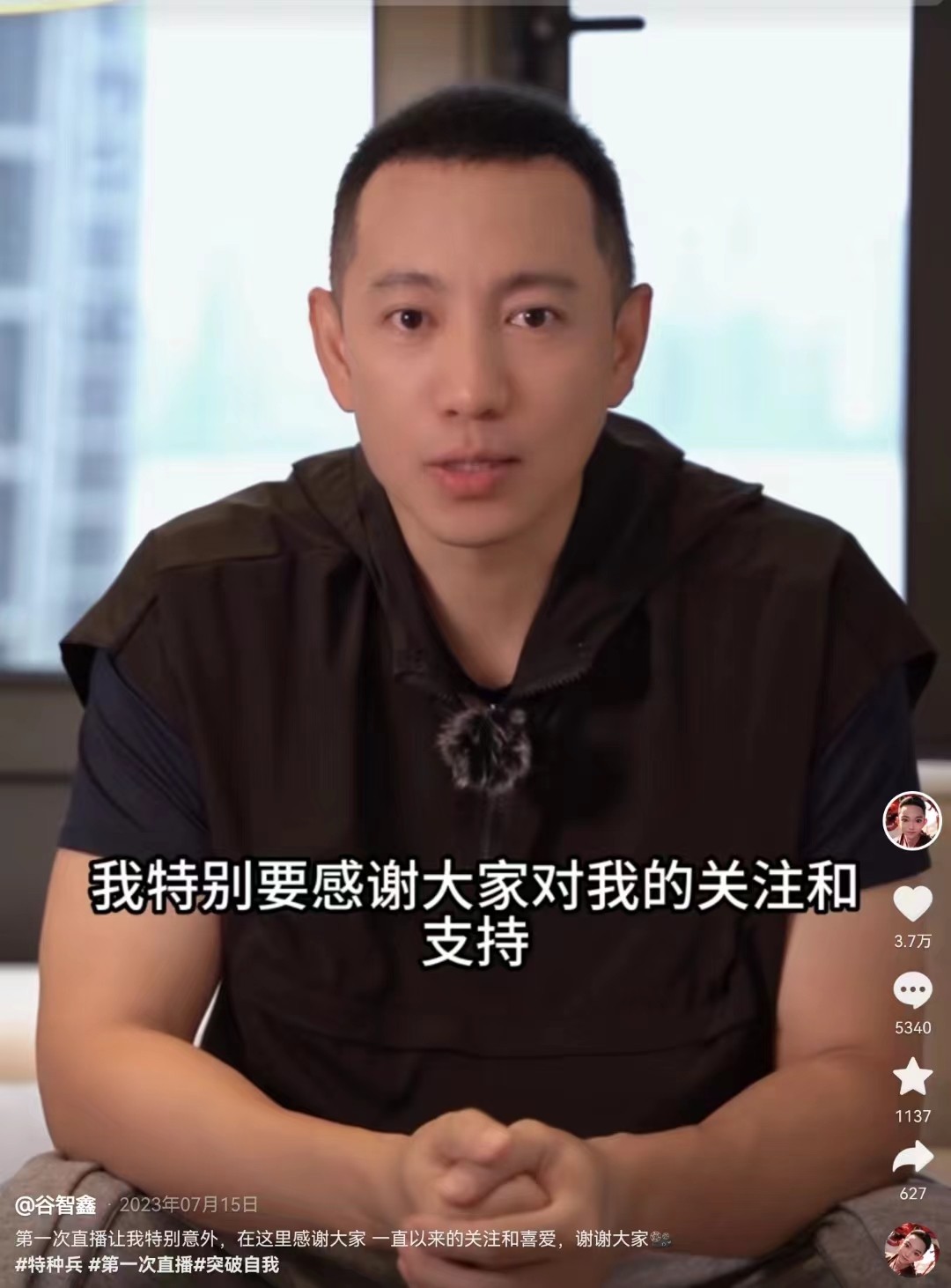 2023年7月,谷智鑫开启了他的第一场直播,在直播间中,他说话特别虔诚随和。