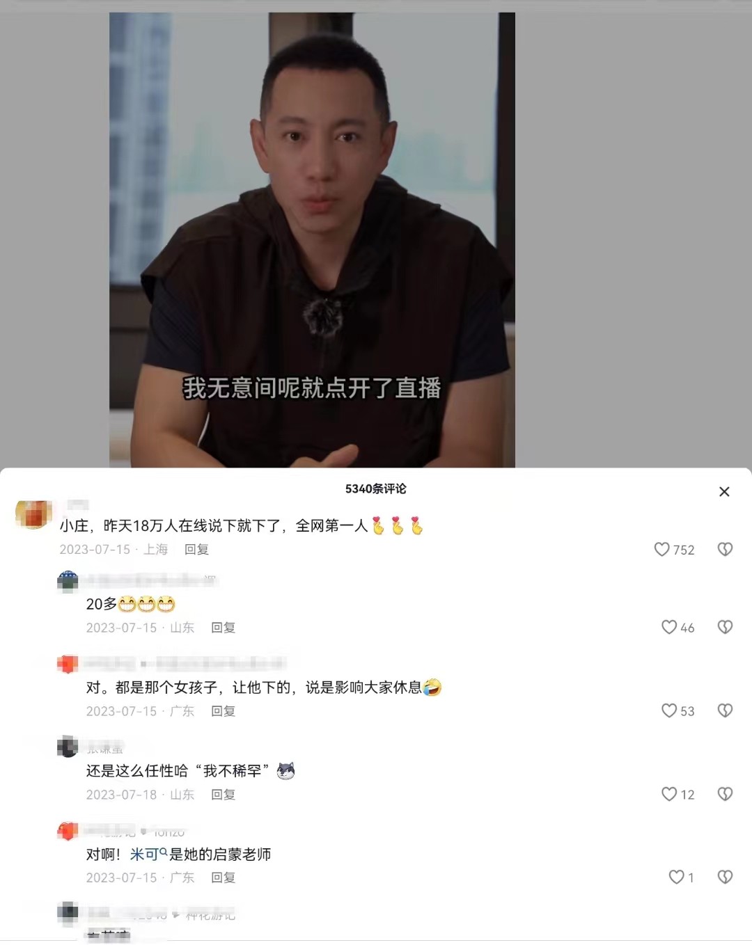 第二天谷智鑫特意发了一个道歉视频,不过网友都没有怪他,反而调侃他:小庄,昨天18万人在线说下就下了,全网第一人!哈哈!