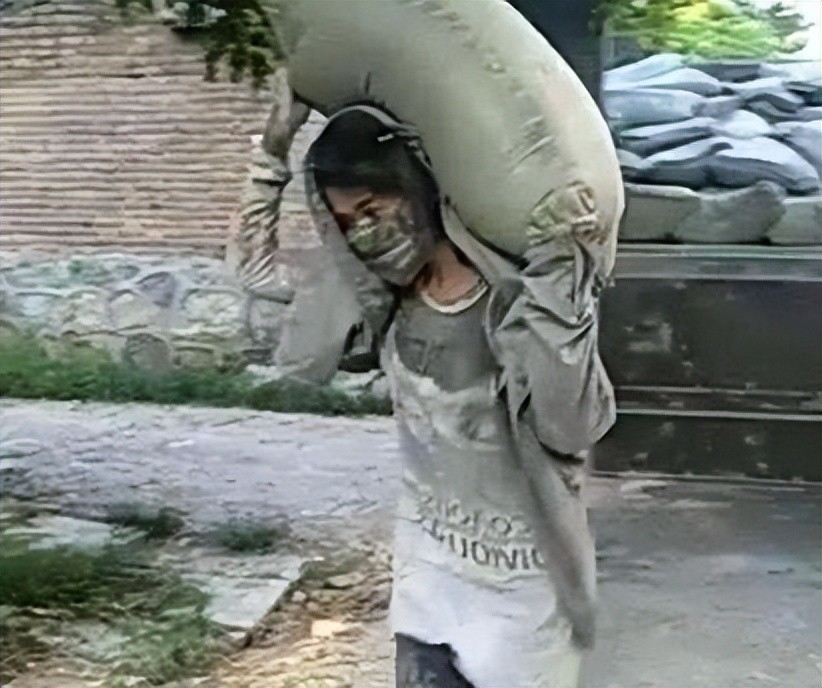 那一袋袋沉重的水泥被她吃力地扛在肩上,汗水顺着脸颊滑落,这样的画面看得人心疼不已。