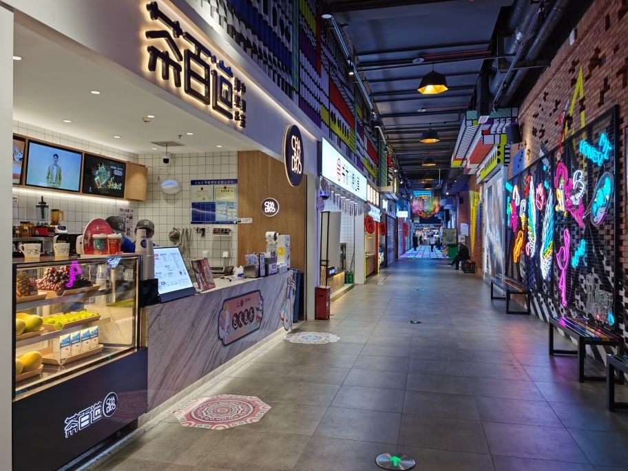 去年北京路网红街开街时,顶上的圆灯随音乐上下升降,二层店面灯火通明,现在都没有哦。