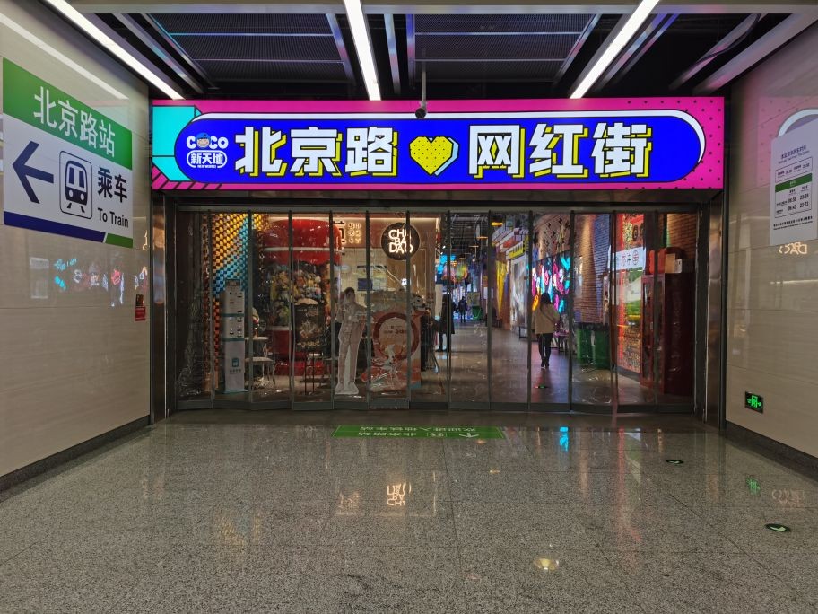 北京路网红街在地铁北京路站内,这是一号线和三号线换乘站,虽然三号线要2023年开通,但这里进出站的乘客也不少。