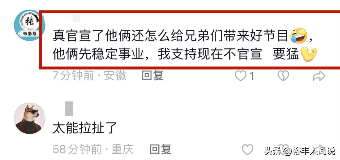 至于为什么不官宣,其实和两人的事业有很大的关系。如果官宣,那么整体的CP效果就会降低,从而影响带货效果,不官宣,还能继续营造剧情,从而为直播带货助力。