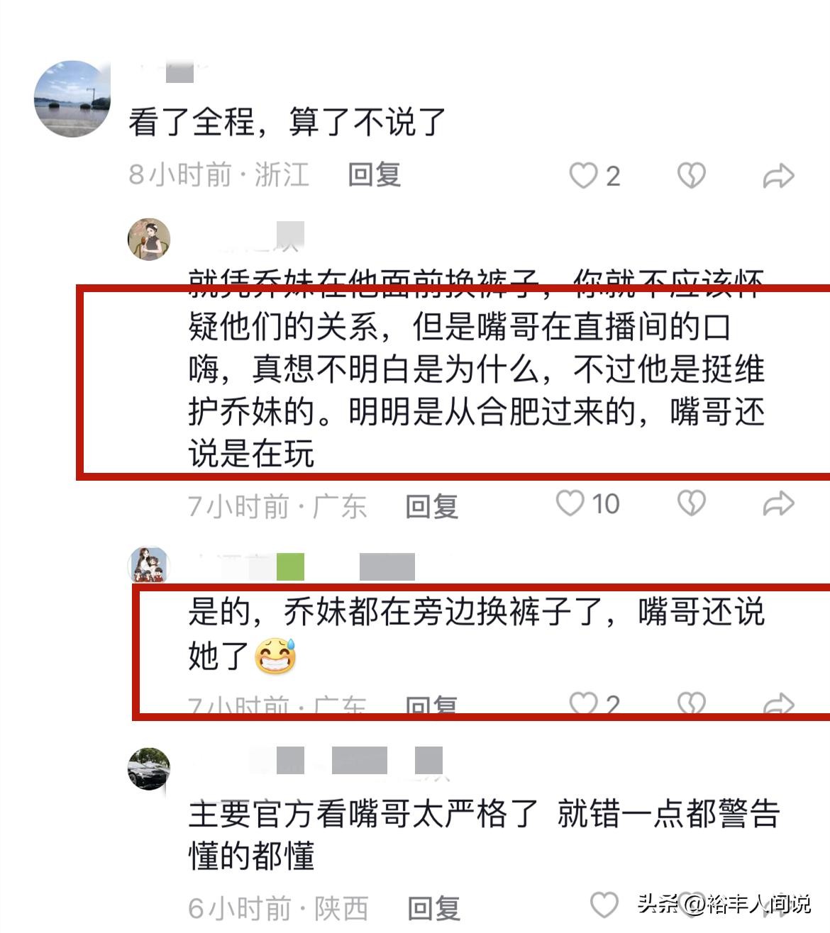 就在昨晚直播的时候,乔妹当着嘴哥的面换裤子(直播间外),而且举止行为非常甜蜜,嘴哥直接对其言语相向。