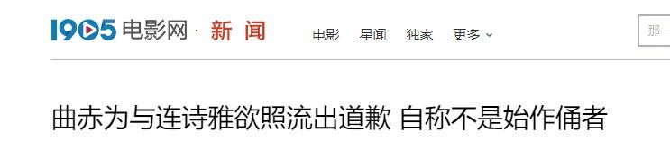 1905电影网:曲赤为与连诗雅欲照流出道歉 自称不是始作俑者