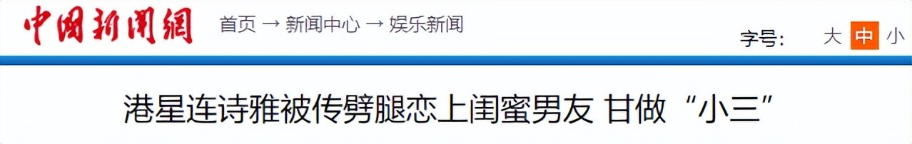 中国新闻网:港星连诗雅被传劈腿恋上闺蜜男友 甘做“小三”