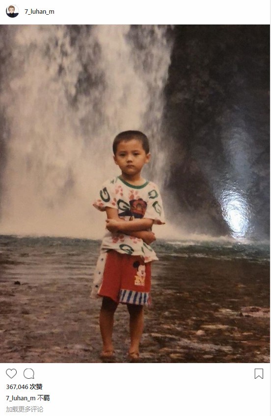 鹿晗晒童年萌照自称不羁一脸严肃在瀑布前留影