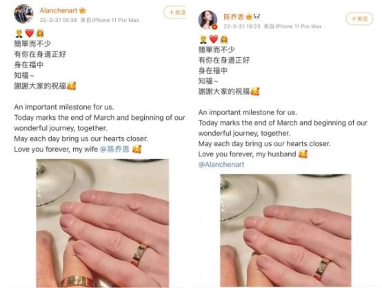 “偶像剧女王”陈乔恩结婚了!3月31日二人的正式官宣喜讯,并配上婚戒照片,幸福感满满。