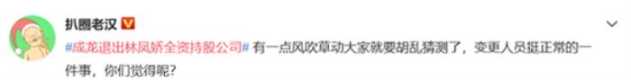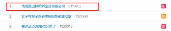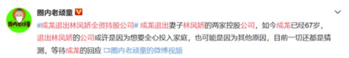 #成龙退出林凤娇全资持股公司#登上微博热搜,引发网友热议。