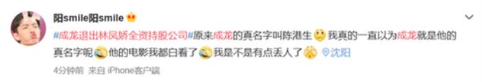 还有网友对此表示,原来成龙的真名字叫陈港生,我真的一直以为成龙就是他的真名字呢!他的电影我都白看了,我是不是有点丢人了。
