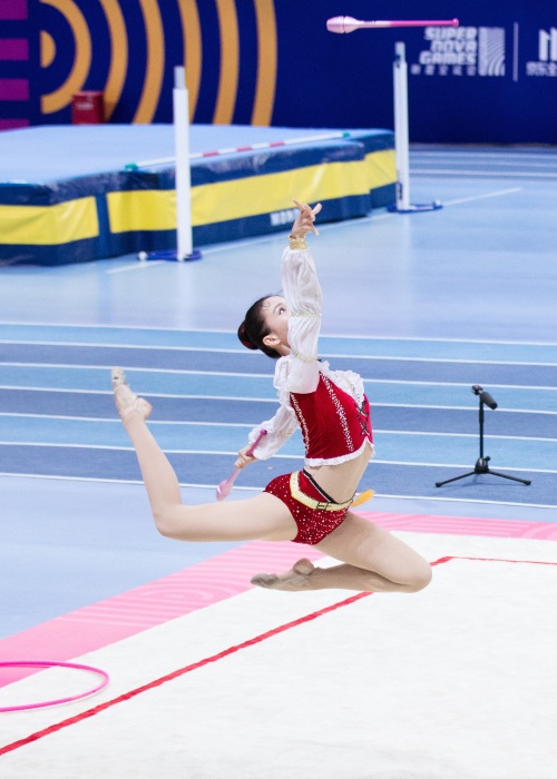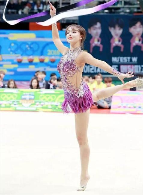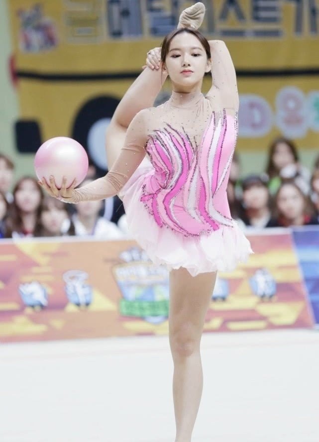当时她用的比赛器械是球,难度较高,但在比赛中展示空翻、下腰劈叉、空中抛接等一系列高难度动作后,她却还能保持球的稳定和流畅,整套动作如行云流水,看呆了所有的韩国人,就连主持人都惊呼,这难道不是奥运会的比赛级别吗?并一举拿下当年的艺术体操金牌!太长脸了!