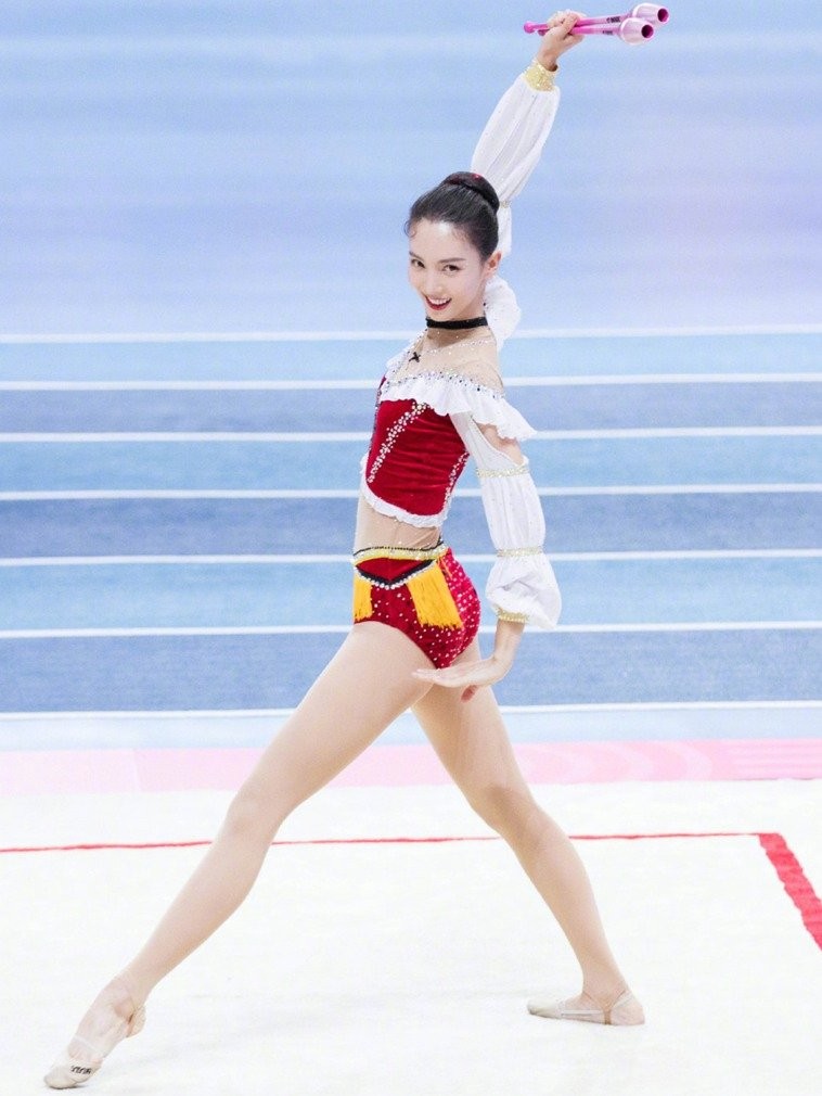 第三位就是程潇了,18岁时,她在韩国偶像运动会上因一支艺术体操而迅速出圈