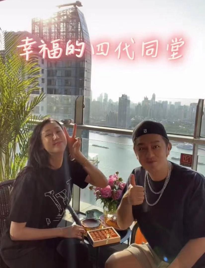 当天阳光正好,陈浩民一大家人坐在阳台享受着日光浴。他们家旁就是上海的黄浦江畔,视野非常好,桌子上还摆放着鲜花和精致的甜品,即使是在隔离中,生活依旧悠闲惬意。