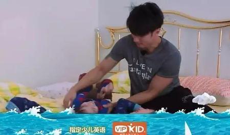 一边帅着,一边哄孩子起床、穿衣服,绝对是模范爸爸了。