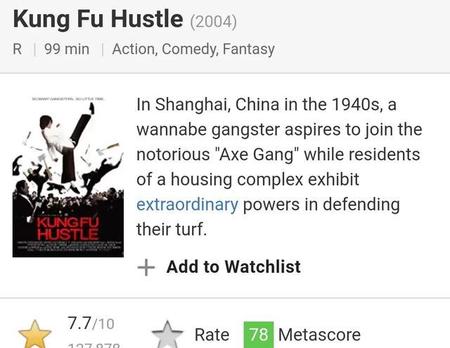 制作成本约2000万美元的《功夫》,上映之后好评如潮,内地票房1.7亿,香港票房6128万,北美票房1700万美元,全球累计票房超过了1亿美元。