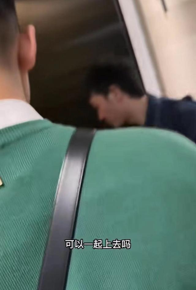 这位房客正好要搭乘电梯上楼,而贾乃亮以及其工作团队也恰巧在等待这趟电梯。这位房客认出贾乃亮后,便热情地喊他的名字,语气非常激动。贾乃亮看了该房客一眼,友好地点了一下头,移开了目光。