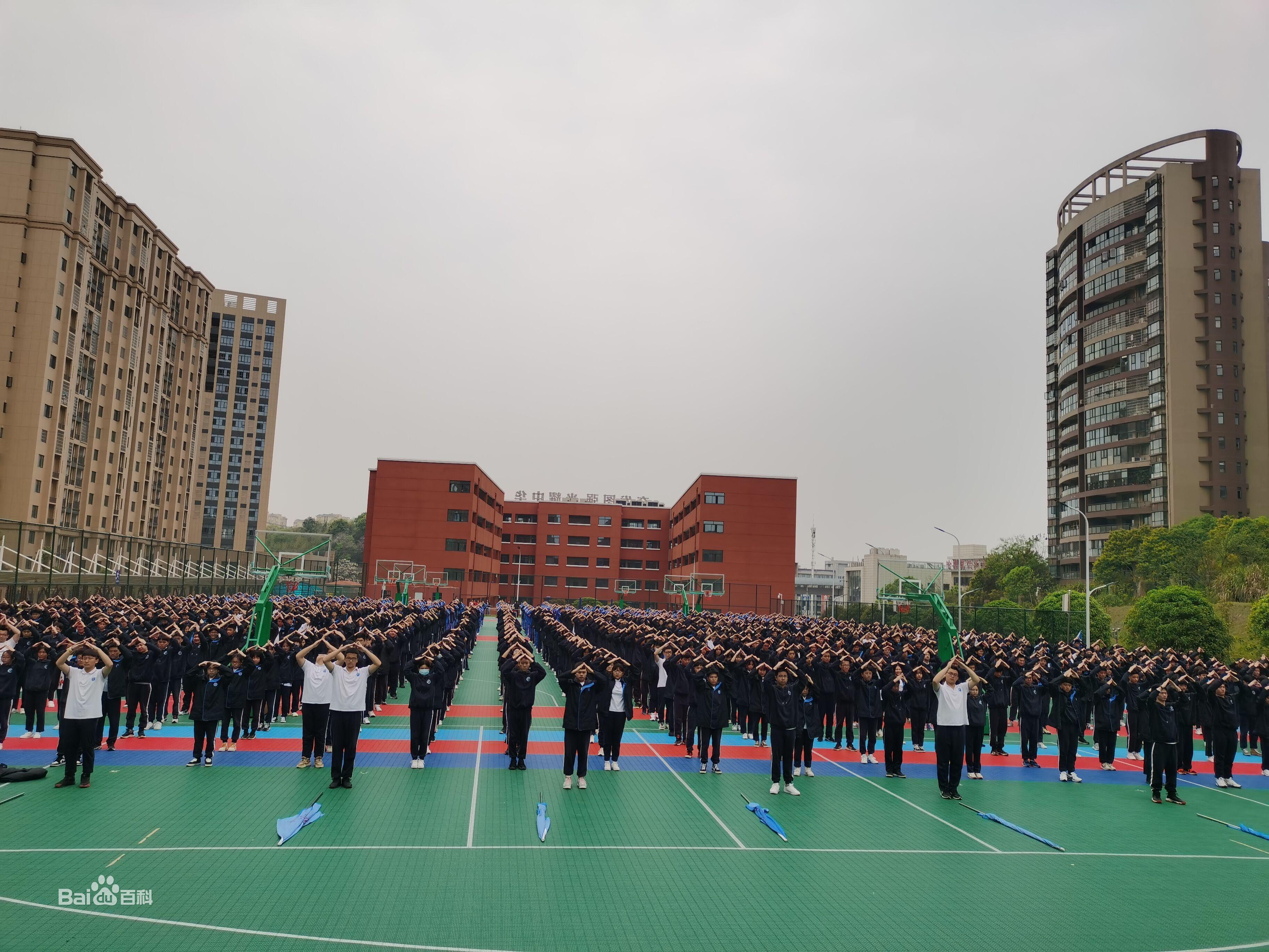 广益中学位于体育竞赛新城,依靠师范学院附中,建校11年,教师培训班75个,在校学生约4000人。