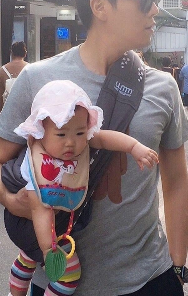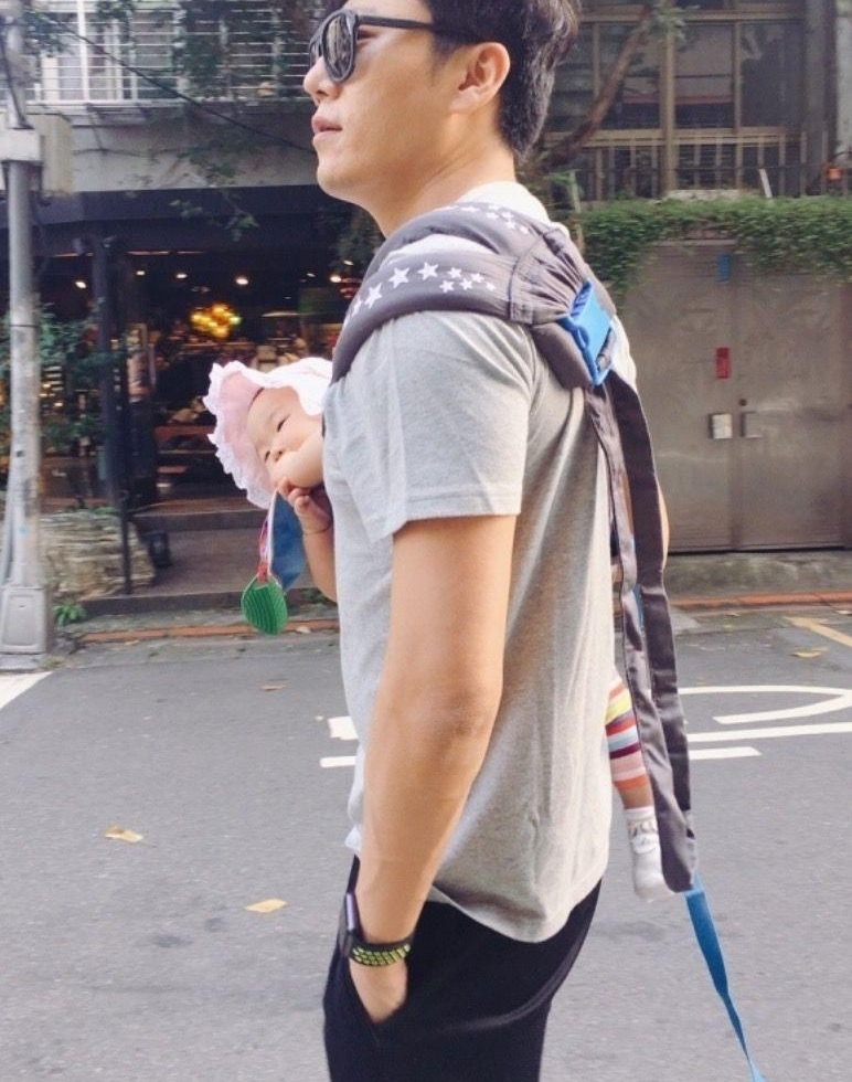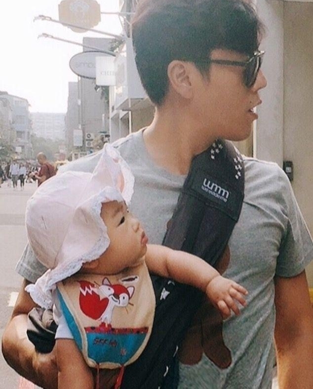伊能静微博晒出:老公秦昊带女儿出街的照片,抱孩子姿势太有范!