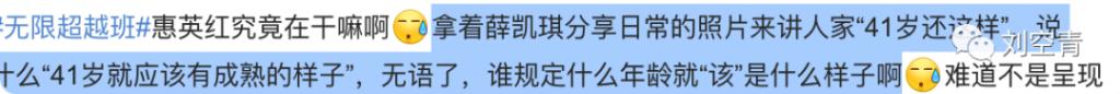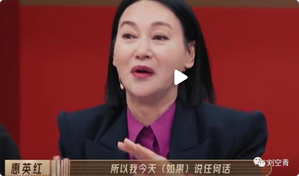 这时候呢,惠英红出来说话了,在薛凯琪的问题上,她还是继续延续了自己之前的瓷娃娃观点,