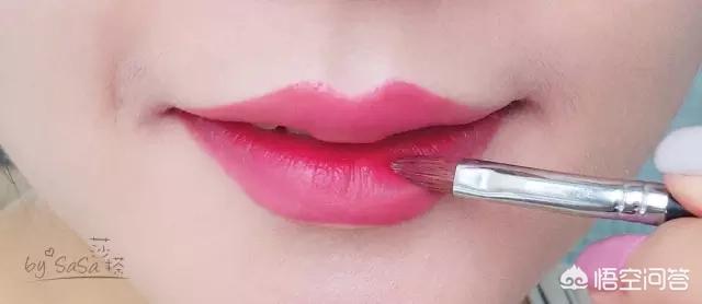 用唇刷蘸膏体仔细的慢慢涂满嘴唇。唇部中间都可加深一层。