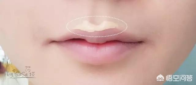 1椭圆嘟嘟唇没有唇峰或者唇峰不明显,笑的时候上唇平直,先用遮瑕液涂在唇峰将唇峰虚化。