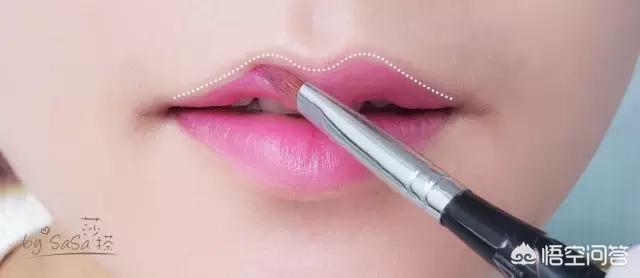 也是用唇刷蘸妆品由唇中间开始向外涂开,唇峰不要画明显,带点椭圆型画。