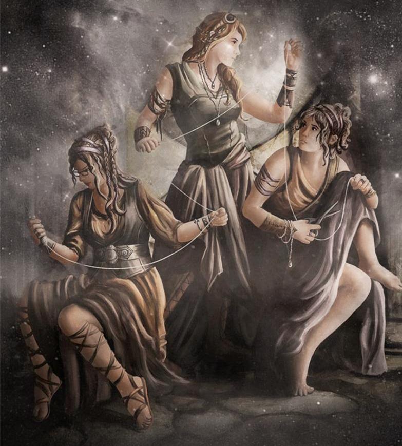 命运三女神摩伊拉,长女阿特波罗斯,次女拉克西丝,三女克罗索。