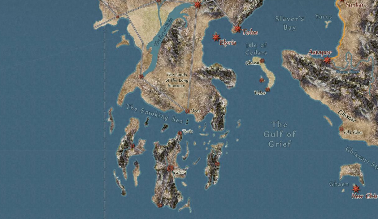 瓦雷利亚城位于如今厄索斯大陆的南边,如今是一片破碎的岛屿,而当年,这里是整个世界的中心。虽然已经覆灭了将近400多年,但是瓦雷利亚人的文明是迄今为止整个世界上已知的最先进的文明。