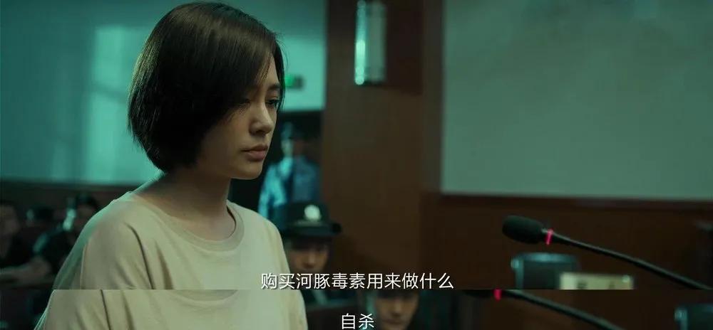 电影一开篇就是一起命案,钟欣潼饰演的女主蒋漫枝,涉嫌利用河豚毒素杀害丈夫柳慕阳,被带上法庭审判。