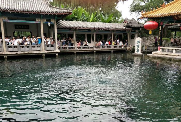 趵突泉的泉眼并不是很冲,从池子里其它地方也有泉水涌出。