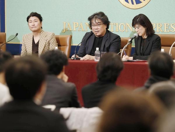 奉俊昊与《寄生虫》男主演宋康昊本月23日在日本举行发布会,吸引了超过200名当地媒体记者参加发布会。