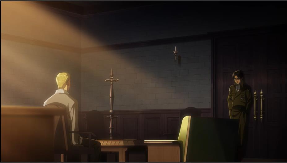 利威尔认为,艾尔文的身体已经让他参与玛利亚之墙夺还战,要求他把指挥权交给汉吉。
